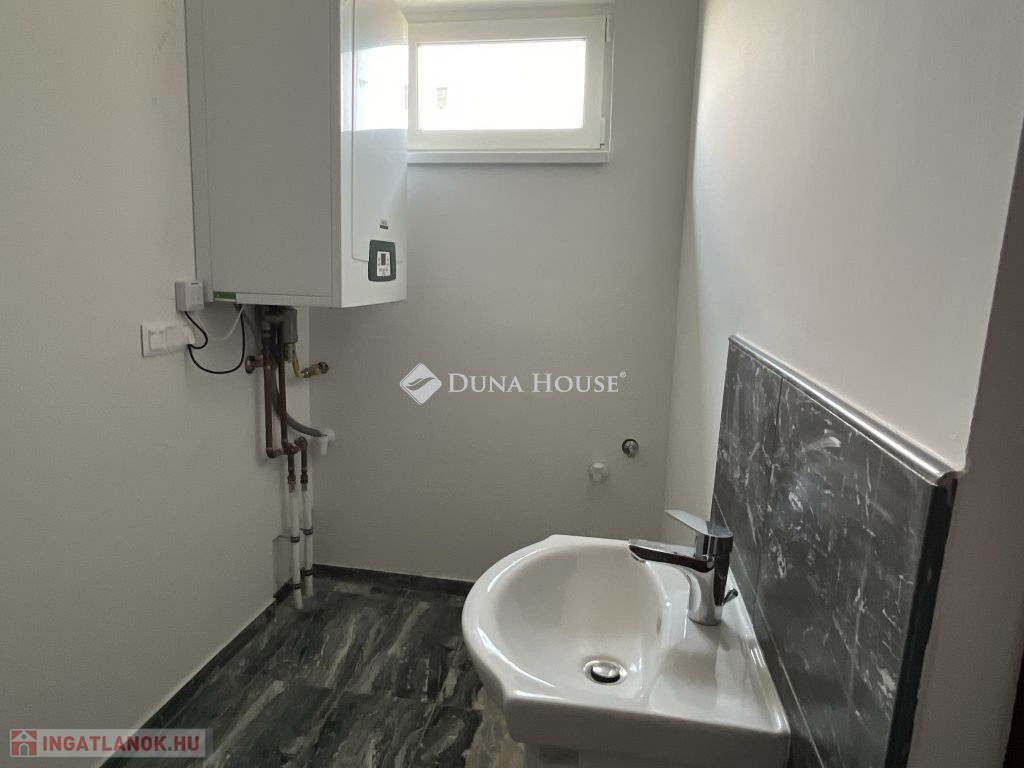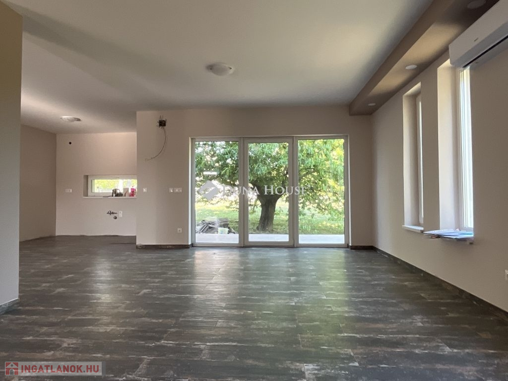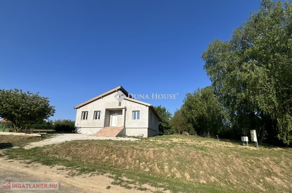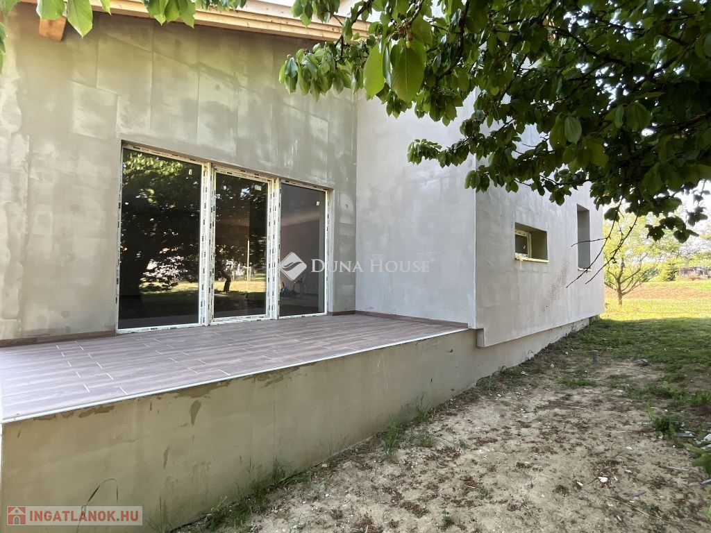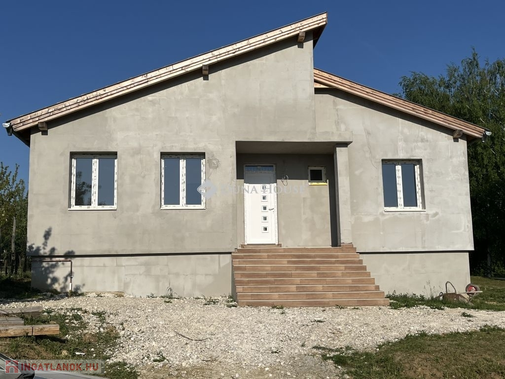 Szeretne új építésű ingatlanban élni, de nincs kedve, ideje az építkezés hosszadalmas, bonyolult folyamatát kivárni ? Itt a kitűnő lehetőség : ÚJ ÉPÍTÉSŰ, 3 szobás CSALÁDI HÁZ NAGYPÁLI településen, 5 km-re Zalaegerszeg várostól ! Az ingatlan kitűnő lokációban helyezkedik el :Nagypáli főutcája mellett, a falu központjában, alig pár km-re a zalai megyeszékhelytől. Szemben vele az utca másik oldalán játszótér található, így kisgyerekes család számára is kitűnő választás. Az utca is új, csak 2-3 házhoz, telekhez nyílik onnan a bejárat. Az ingatlan 1079 nm-es területen helyezkedik el, ahol pár fa dekorálja az udvart. Mivel a falu magasabb pontján áll, nyugat felé panorámás kilátás nyílik belőle. Napfényes, hiszen a konyha - nappali része kelet felől, illetve délről kapja egész nap a fényt, egy szoba keleti, a másik kettő nyugati fekvésű. Az udvar még nincs körbekerítve, ez a feladat, illetve az ingatlan külső színezése az, ami a leendő vevőre vár, hogy ők maguk választhassák ki maguknak a megfelelő színt, stílust. A három szobán kívül hatalmas étkező-nappali-konyha tér uralja a házat, ami klímás fűtést is kapott, illetve innen nyílik egy nagy fedett terasz is, keleti - déli tájolással. Előszoba, háztartási helyiség, kamra segíti a tárolást, pakolást. A fürdőszoba zuhanyzóval, káddal épült, illetve 2 külön álló wc található az ingatlanban. Gyakorlatilag azonnal költözhető, a befejező munkálatokat az új vevő már lakhatás mellett is tudja végezni. Nagypáli 5 km-re található Zalaegerszegtől, az utóbbi években nagyon kedvelt, gyorsan fejlődő településként vált ismertté és kedveltté a környékbeliek számára. Új utcák, újépítésű ingatlanok, szépen kialakított falukép várja az ideköltözőket. A környéken rengeteg kirándulási, pihenési , sportolási lehetőség nyújt kikapcsolódásra módot. Zalaegerszeg egyre bővülő, fejlődő városként kitűnő munkalehetőségeket kínál az aktív korúak számára, a gyerekeket pedig speciális óvodák, iskolák várják tanulási lehetőségekkel. A Balaton fél óra alatt elérhető a környékről, Ausztria, Szlovénia, Horvátország alig egy órás autóútra van innen. Ha érdekli az ingatlan, hívjon fel, keressen meg, nézzük meg együtt, és ha beleszeret, azonnali szerződési lehetőséggel tudunk segíteni. Vevőinknek szolgáltatásaink díjmentesek,támogatásokban, hitelügyintézésben is állunk vevőink rendelkezésére.